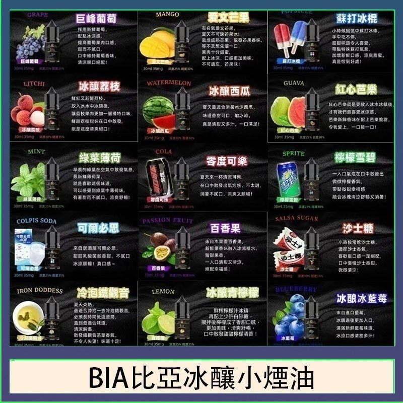 紅心芭樂, 檸檬雪碧, 可爾必思, 蘇打冰棍, 巨峰葡萄, 愛文芒果, 百香果, 冷泡鐵觀音, 荔枝, 沙士, 可樂, 西瓜, 青檸檬, 藍莓, 薄荷